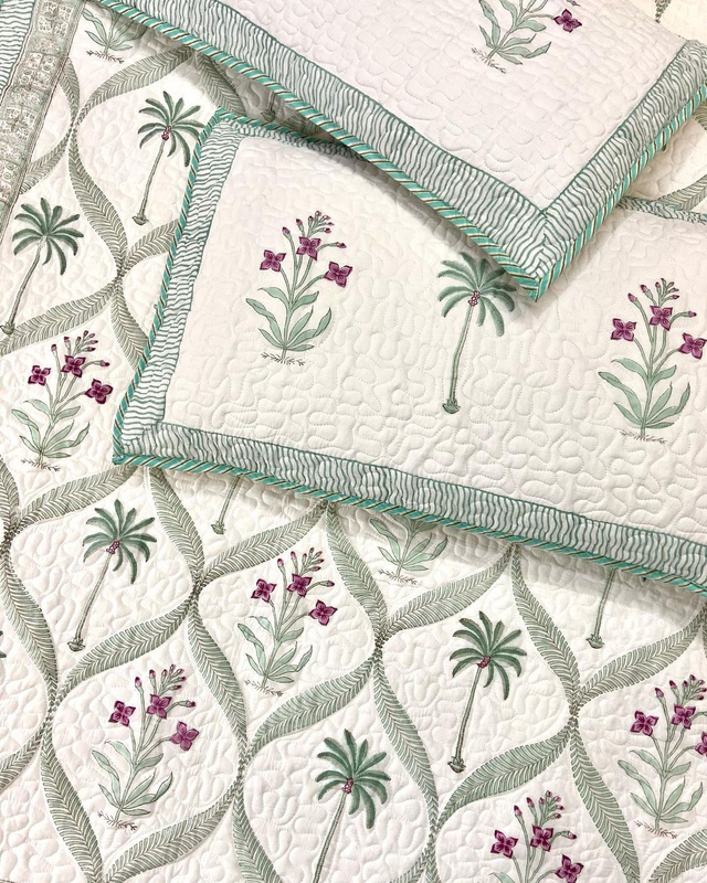 Premium Quilted Mulmul Bedcover with 2 Quilted pillow coversSize- 90*108 Inches Fabric – Mulmul ( Muslin Cotton) Handblock Printed Washing Care – Machine Washable