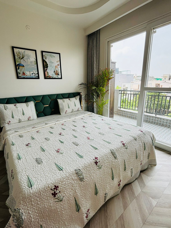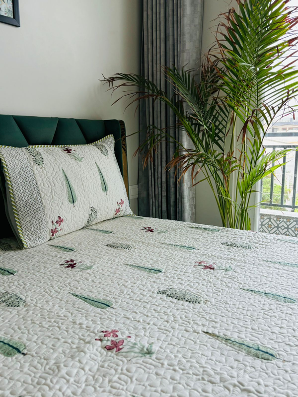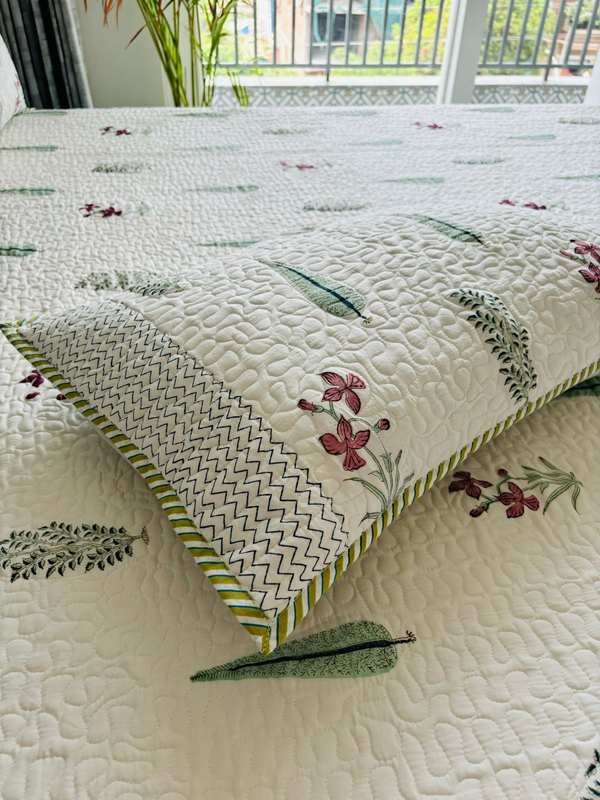Design: Accompanying the bedcover are two matching pillow covers, designed to complement the overall aesthetic. Each cover features the same handblock print, creating a cohesive look that enhances your bedroom decor.